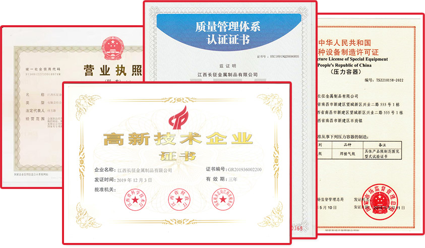 江西長征金屬制品有限公司,原大型航天軍工企業(yè)江西長征機器廠,是國家勞動部定點生產(chǎn)氣瓶的專業(yè)廠家。公司擁有雄厚的軍工技術(shù)力量,設(shè)備先進,檢測手段完備,按照GB/T5100標(biāo)準(zhǔn)和GB/T5842標(biāo)準(zhǔn)、GB/T17673標(biāo)準(zhǔn)要求,建立了嚴(yán)格的企業(yè)管理制度和完整有效的產(chǎn)品質(zhì)量保證體系。